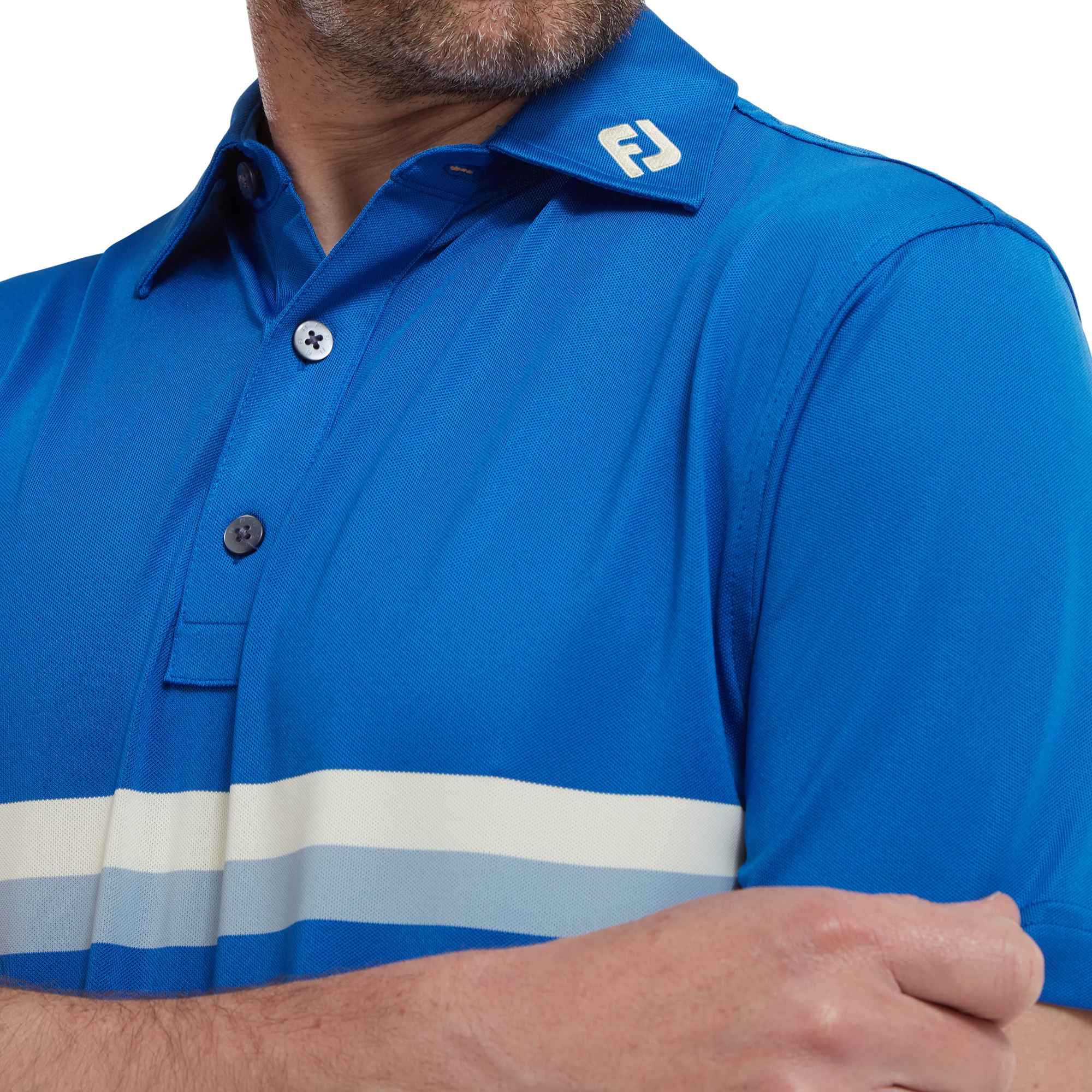 FootJoy Double Chest Band Pique Golf Shirt 88392 Royal/Lemonade/Dove Grey