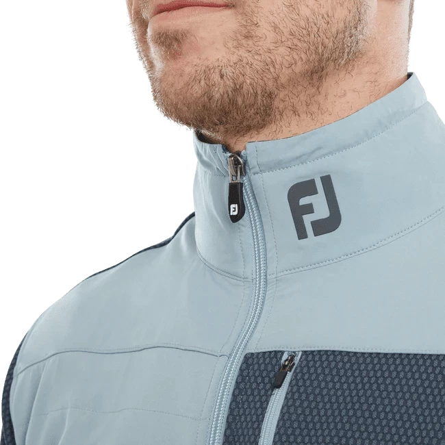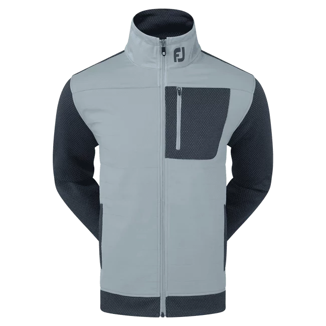 Heat up your game in the FootJoy ThermoSeries Hybrid Golf Jacket. The brushed back jacquard knit body and sleeves, lightweight woven quilted on front panels and collar, adjustable collar, and open hand pockets are engineered to adapt as the weather changes so you can look, feel, and play your best in any conditions.