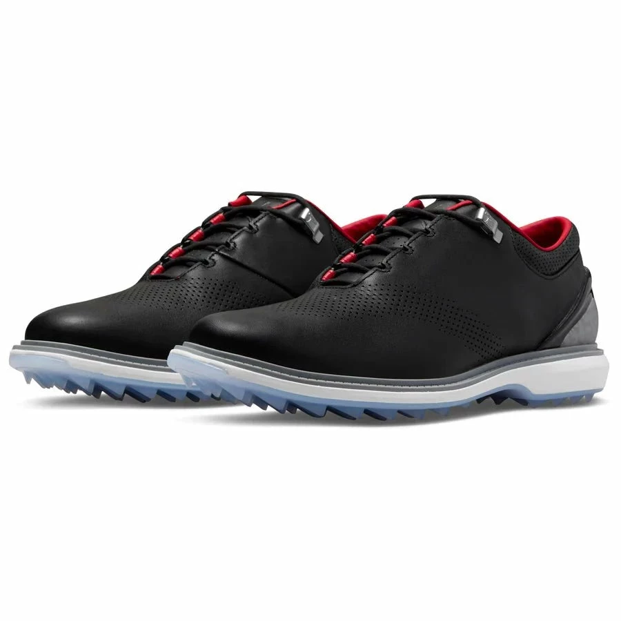 As a request from Michael Jordan himself the Nike Jordan ADG 4 Golf Shoes incorporates an incredible, classic silhouette with retro Jordan flavour. Supple, full-grain leather boasts the iconic elephant print on the heel with the iconic Jordan logo contrasted in black.
