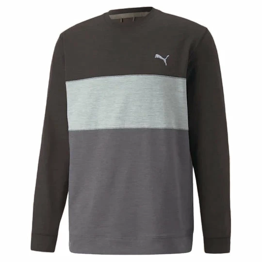 Puma Cloudspun Colourblock Crew Neck Golf Mid Layer 535458 | Puma Black Heather/High Rise Heather 01